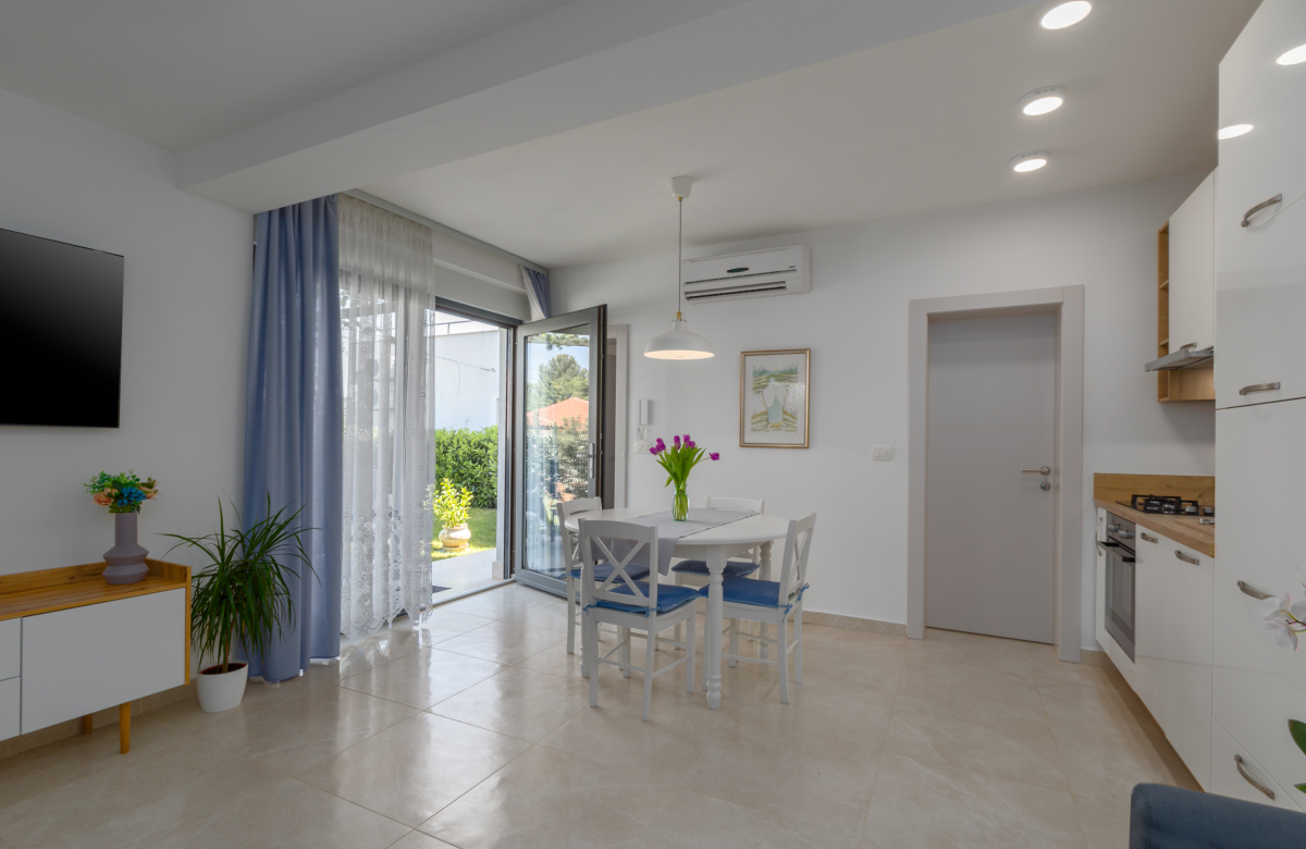 Riva Garden Exclusive è un appartamento di lusso situato nel porto di Funtana, ideale per una vacanza rilassante vicino al mare. Con una superficie di 60 m², l'appartamento offre privacy e comfort, ed è situato al piano terra, circondato da un ampio giardino di 300 m².