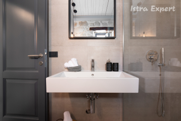 Villa Dvori è una splendida casa vacanze di design con piscina ai margini del villaggio di Ve?naveri, nelle immediate vicinanze di Pore? (6 km).Questa attraente casa vacanze è stata costruita come ricostruzione di una tradizionale casa in pietra (bifamiliare) ed è una buona scelta per gli amanti del design moderno e del comfort. Gli interni della casa sono arredati con mobili moderni. Su un terreno recintato, gli ospiti possono godere dell'area esterna decorata con dettagli, con una piscina, un tavolo per mangiare all'aperto e un camino per il barbecue.La casa vacanze di 60 mq è completamente climatizzata e per 2-3 persone. È composta da una cucina completamente attrezzata con sala da pranzo e soggiorno con camino e divano letto per due persone, una camera matrimoniale e una doccia/WC.NOTA: Sono ammessi animali domestici di piccola taglia fino a un massimo di 15 kg. Si prega di notare che questa struttura può accettare gruppi di giovani su richiesta. Vi preghiamo di contattarci per verificarlo. Un gruppo di giovani in questa struttura è composto da persone di età non superiore ai 26 anni. Se siete un gruppo di giovani [o state pianificando un addio al celibato] potrebbe esservi chiesto di pagare un deposito aggiuntivo all'arrivo. Eventuali importi necessari per riparare i danni alla proprietà saranno detratti dal deposito.